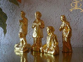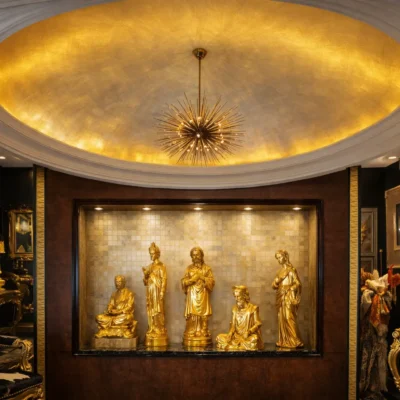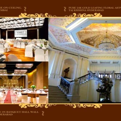Our talented artisans carefully apply incredibly thin sheets of gold to surfaces like walls, ceilings, domes, mouldings, and decorative items using years of practical experience. The end effect is a rich metallic finish that gives any area a sense of grandeur and beautifully reflects light.
